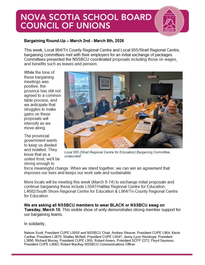NSSBCU Bargaining Round-Up – March 2nd to March 8th, 2026 March 8, 2026 Share this: Click to share on Facebook (Opens in new window) Facebook Click to share on X (Opens in new window) X
